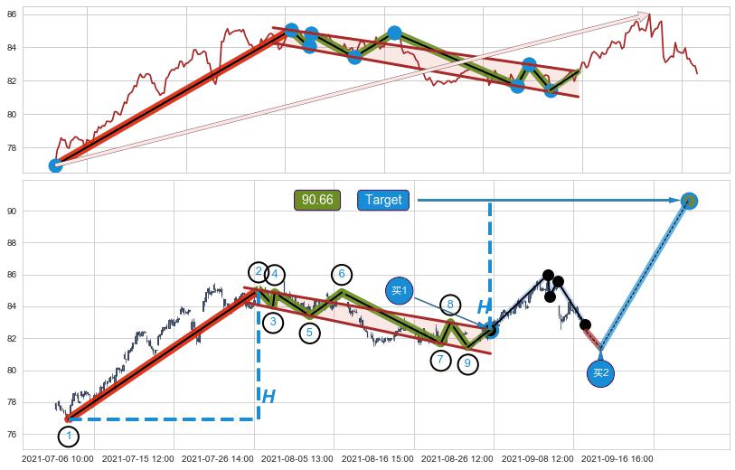 ➣ 最小中继整理涨幅→𝐇: 8.11 (𝐇旗杆的长度:旗杆起点→顶点)
