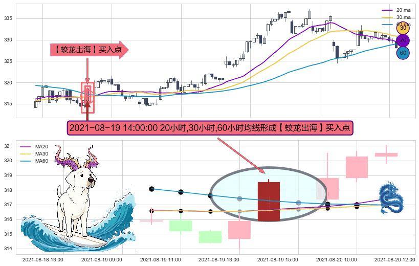 形态多维评估: ⚀ 2021-08-19 14:00:00小时显现 20小时-30小时-60小时均线 【蛟龙出海】买入点 看多信号,后市看涨,买入