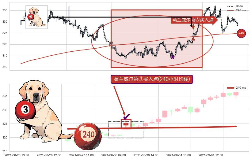 形态多维评估: ⚀ 2021-08-30 09:00:00-小时显现 葛兰威尔均线 240小时均线 第③买入点 上升趋势的中继信号,后市看涨,买进信号