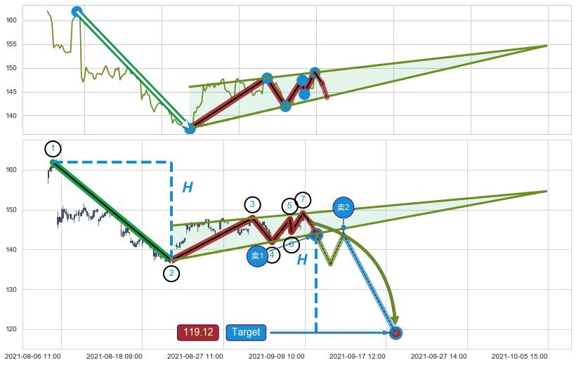 ➣ AI预测: 假定反转启动后, 第❶目标位置(09-23:14, 148.55)