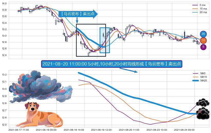 ⚀ 2021-08-18 13:00:00小时-2021-08-24 10:00:00小时显现 5小时-10小时-20小时均线 【乌云密布】卖出点 看空信号,后市看跌,卖出