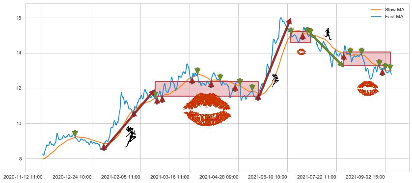 06-14 11:00至06-30 09:00 慢线与快线多次接触,存在上下穿越,有缠绕