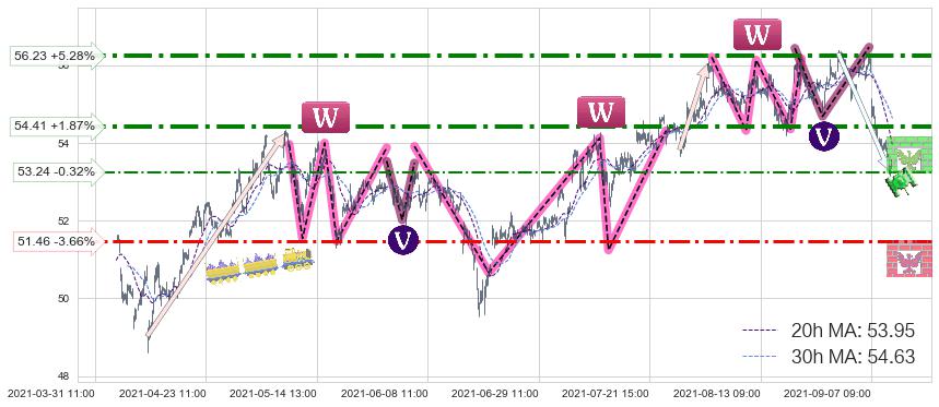 ♘ 阻力价格位54.41,可信任强度81.19%,距离最后交易2021-09-09 15:00形成的收盘价格53.41相差 +1.87%