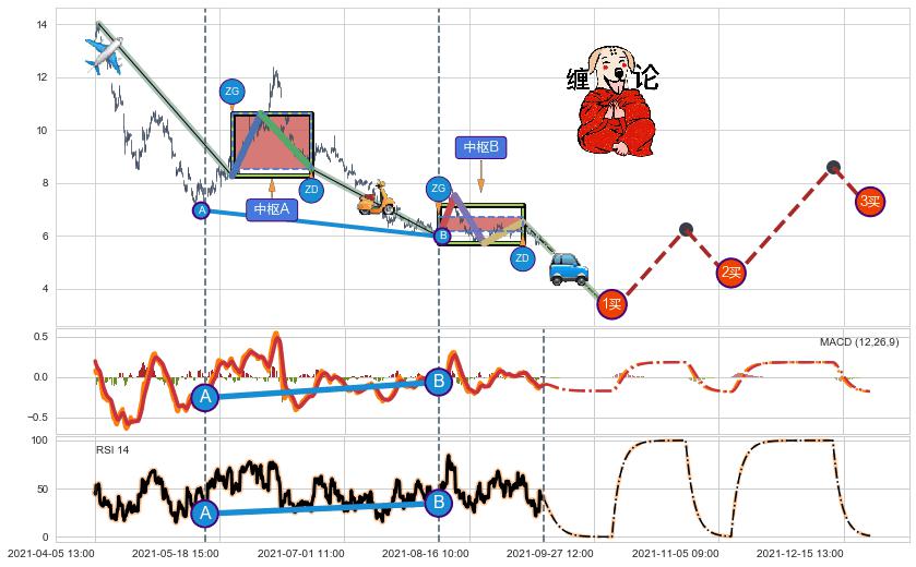 ➣ 【未完成】缠论 起点:04-06:13, 完成第1中枢A,完成第2中枢B,到达09-09:15