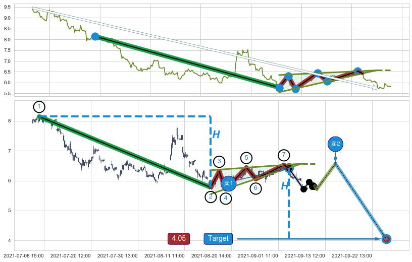 ➣ 【已确认突破】最后价格:5.82与最小【整理】第一目标价格→(09-24:14: 4.05 )相较: 下跌空间【较大】