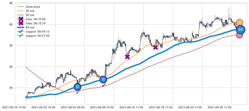 上涨趋势05-19 13:00-07-01 09:00,均线60确认关键支撑2处