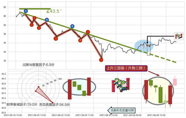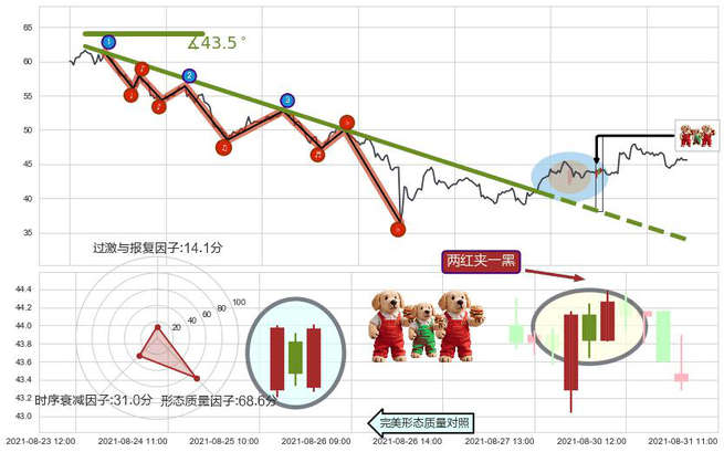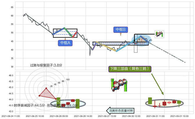 ➢ 🕰 价格走势在2021-08-30 14:00:00至2021-08-31 14:00:00期间形成下降三部曲(降势三鹤),残存影响值:-2.44