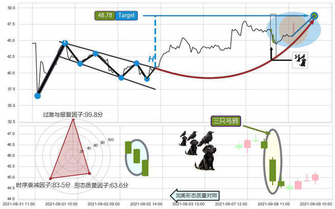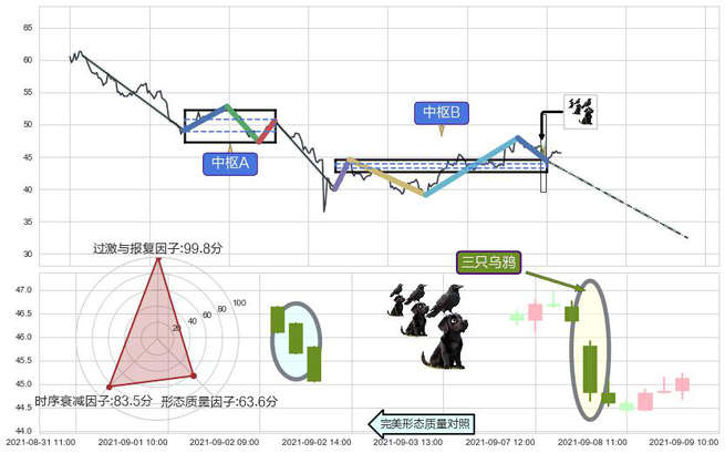 ➢ 🕰 价格走势在2021-09-07 14:00:00至2021-09-08 10:00:00期间形成三只乌鸦,残存影响值:-2.85