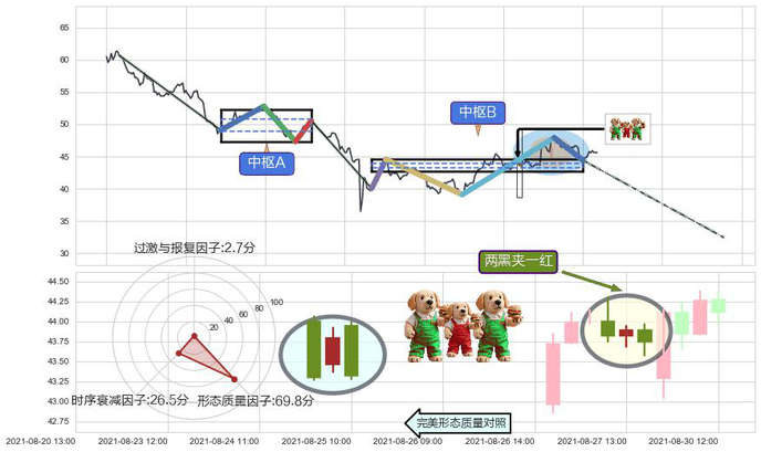 ➢ 两黑夹一红 🔜 缠论中枢点破位中枢B支撑下拉 综合量化分数:47.58 【中性】