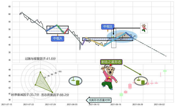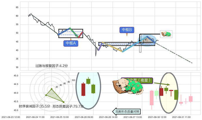 ➢ 黄昏之星(夜星) 🔜 缠论中枢点破位中枢B支撑下拉 综合量化分数:48.35 【中性】