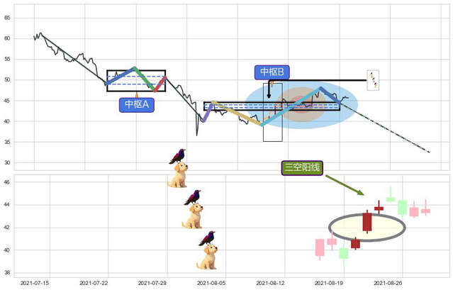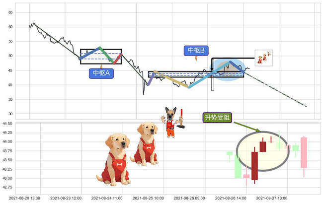 ➢ 缠论中枢点:猜想破位中枢B后持续下拉 → 下跌 → 破位中枢B支撑 → 持续趋势跟踪