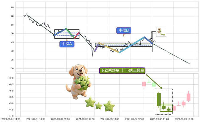 ➢ 🕰 价格走势在2021-09-08 09:00:00至2021-09-08 11:00:00期间形成下跌两颗星 | 下跌三颗星,残存影响值:-8.99