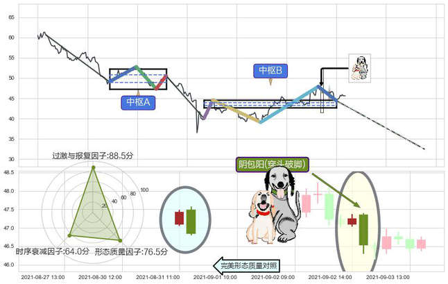 ➢ 阴包阳(穿头破脚) 🔜 缠论中枢点破位中枢B支撑下拉 综合量化分数:45.95 【偏空】