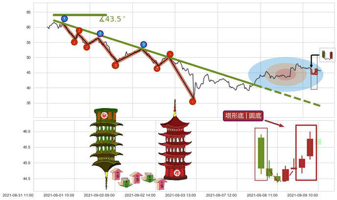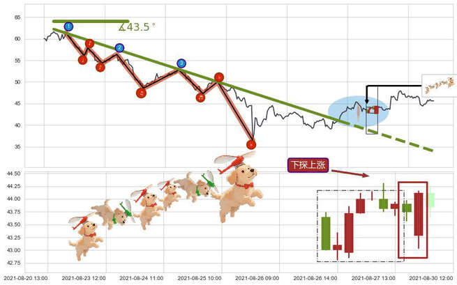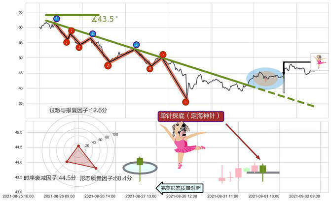 ➢ 🕰 价格走势在2021-08-31 14:00:00至2021-08-31 14:00:00期间形成单针探底(定海神针),残存影响值:2.71