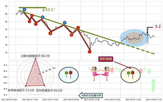 ➢ 🕰 价格走势在2021-09-07 09:00:00至2021-09-07 10:00:00期间形成双针探底,残存影响值:5.75