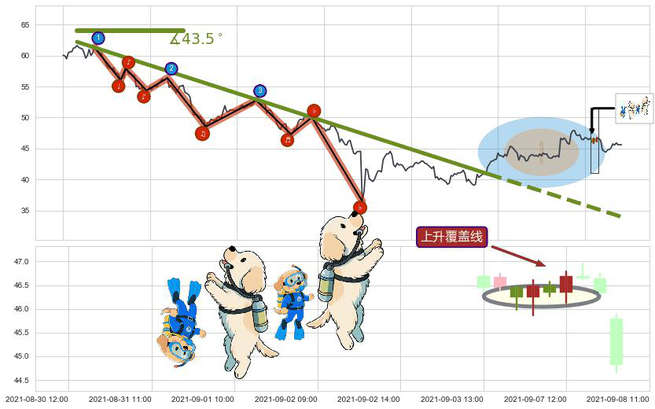 ➢ 🕰 价格走势在2021-09-02 14:00:00至2021-09-03 09:00:00期间形成阴包阳(穿头破脚),残存影响值:-4.63