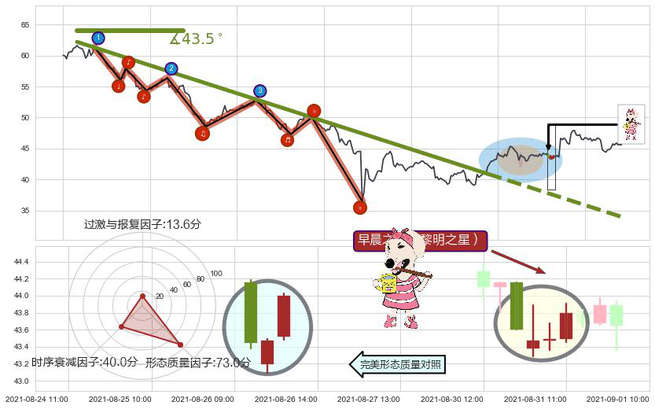 ➢ 🕰 价格走势在2021-08-30 14:00:00至2021-08-31 11:00:00期间形成早晨之星(黎明之星),残存影响值:2.98
