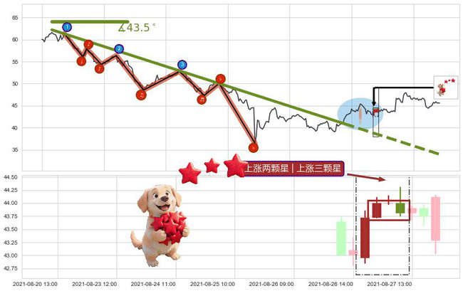➢ 🕰 价格走势在2021-08-27 09:00:00至2021-08-27 12:00:00期间形成上涨两颗星 | 上涨三颗星,残存影响值:1.60