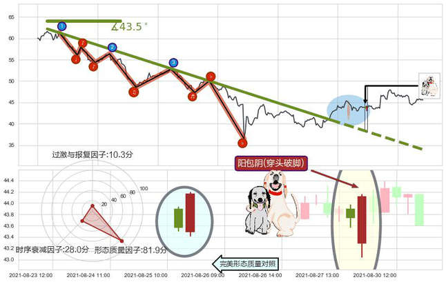 ➢ 🕰 价格走势在2021-08-27 14:00:00至2021-08-30 09:00:00期间形成阳包阴(穿头破脚),残存影响值:2.25