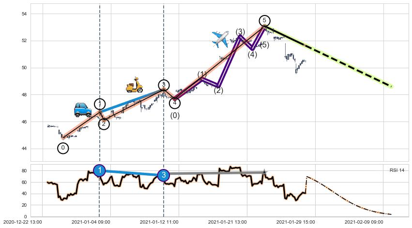 2021-01-07: 第一支撑位46.74有效抑制了下跌浪,成功阻止了价格的继续下跌。