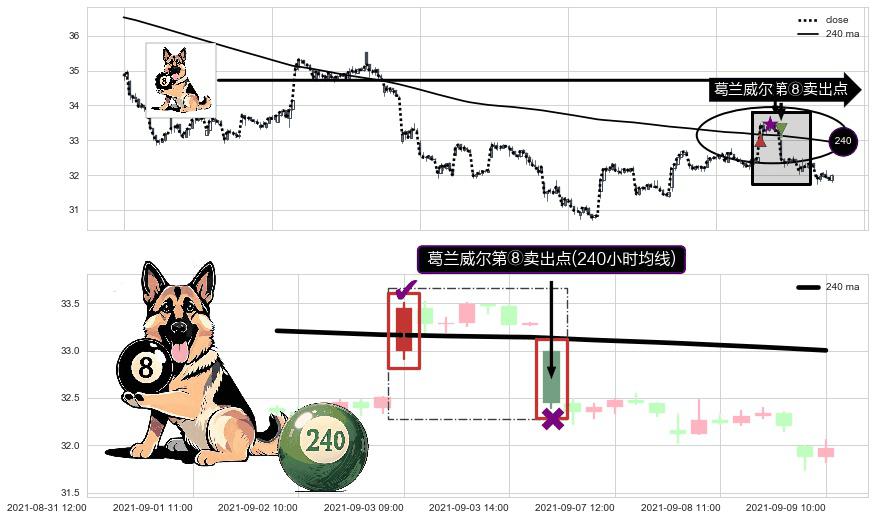 形态多维评估: ⚀ 2021-09-07 09:00:00-小时显现 葛兰威尔均线 240小时均线 第⑧卖出点 下降趋势的中继信号,后市看跌,卖出信号