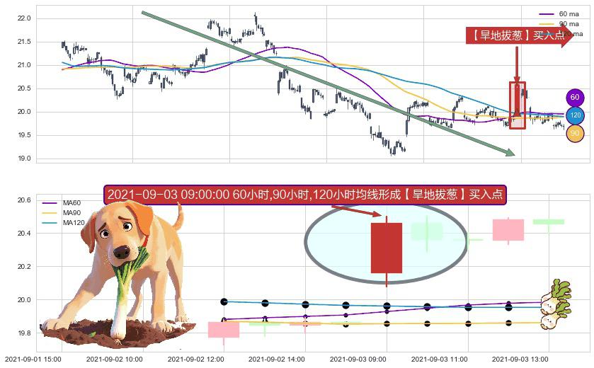 形态多维评估: ⚀ 2021-09-03 10:00:00-小时至2021-09-03 14:00:00-小时显现 20小时-30小时-60小时均线 【银山谷】买入点 看多信号,后市看涨,买入