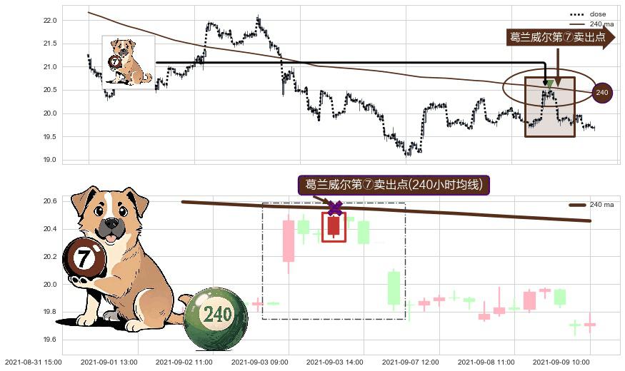 形态多维评估: ⚀ 2021-09-03 12:00:00-小时显现 葛兰威尔均线 240小时均线 第⑦卖出点 下降趋势的中继信号,后市看跌,卖出信号