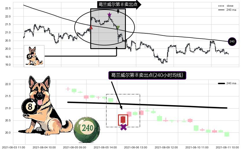 形态多维评估: ⚀ 2021-08-06 09:00:00-小时显现 葛兰威尔均线 240小时均线 第⑧卖出点 下降趋势的中继信号,后市看跌,卖出信号