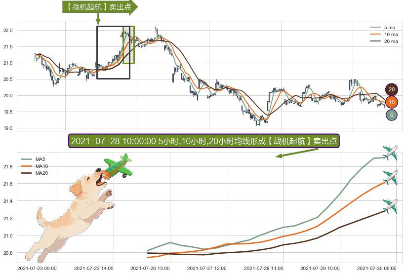 形态多维评估: ⚀ 2021-07-26 11:00:00小时-2021-07-29 14:00:00小时显现 5小时-10小时-20小时均线 【战机起航】卖出点 看空信号,后市看跌,卖出