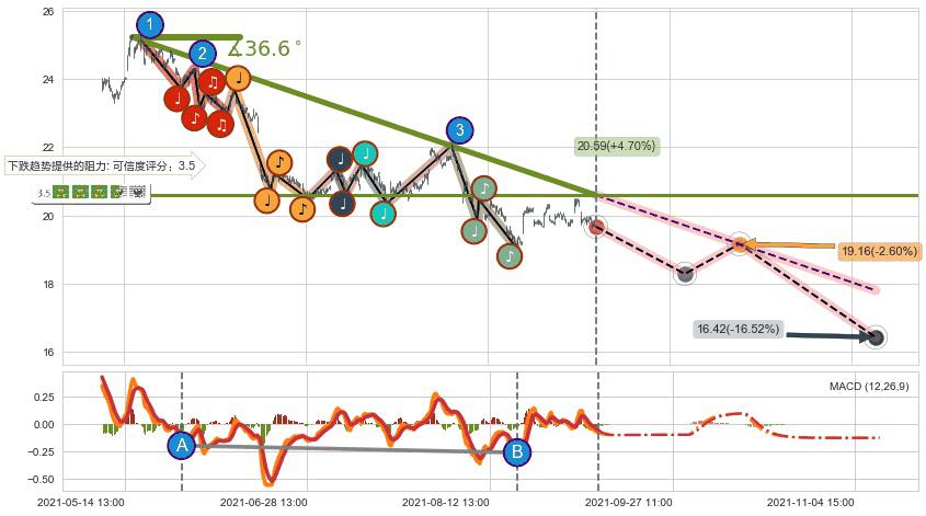 ➣ 预测:2021-10-12 11:00,【试探阻力】稳定目前下跌趋势的前提下,预测价格:19.16