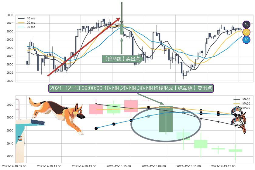 形态多维评估: ⚀ 2021-12-13 09:00:00小时显现 10小时-20小时-30小时均线 【绝命跳】卖出点 看空信号,后市看跌,卖出