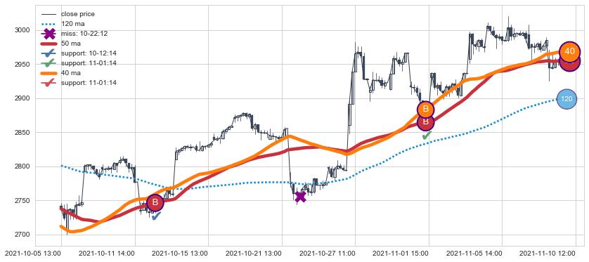 上涨趋势03-30 14:00-05-04 14:00,均线50确认关键支撑3处