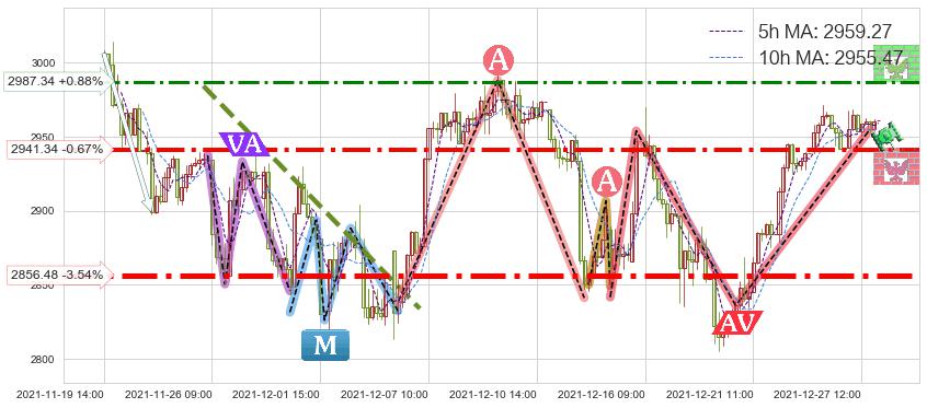 ♘ 支撑价格位2941.34,可信任强度83.17%,距离最后交易2021-12-27 16:00形成的收盘价格2961.28相差 -0.67%
