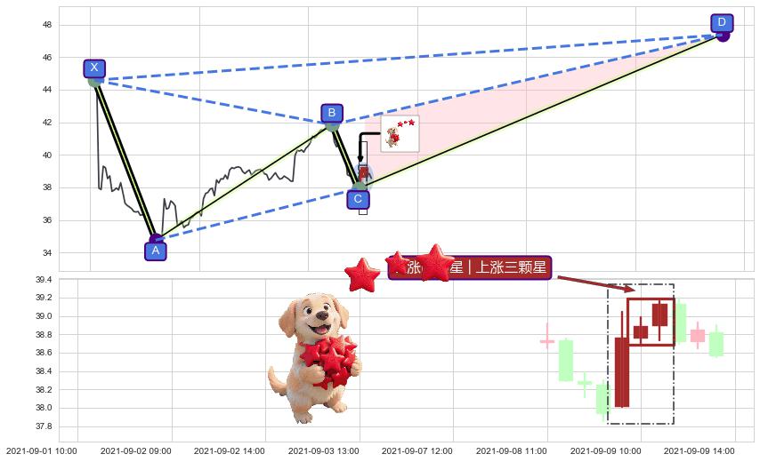 ➣ D点拟合预测价格47.38,距离最后交易收盘价格38.56相差 +22.87%