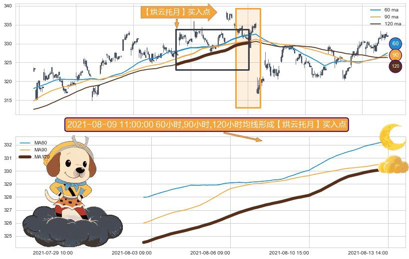 ⚀ 2021-08-02 14:00:00小时-2021-08-13 14:00:00小时显现 60小时-90小时-120小时均线 【烘云托月】买入点 看多信号,后市看涨,买入