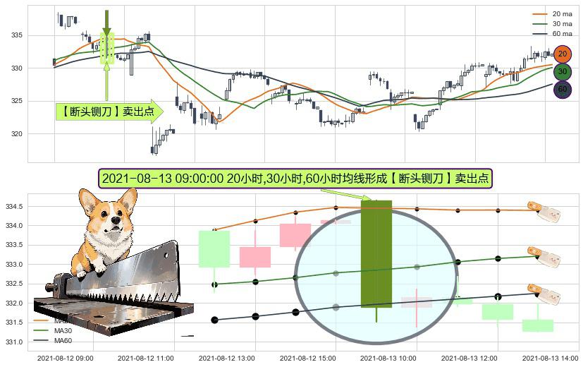 ⚀ 2021-08-13 09:00:00小时显现 20小时-30小时-60小时均线 【断头铡刀】卖出点 看空信号,后市看跌,卖出