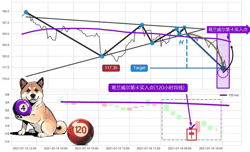 ➢ 收盘价(07-19:10: 119.20 )→回踩→第二根k线高点(07-19:09: 116.88 )