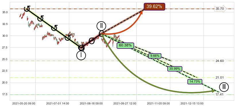 ➢ 循环浪继续向下【最低】位置(01-07:14, 17.41),匹配聚类样本比例24.39%, 可能性概率14.73%
