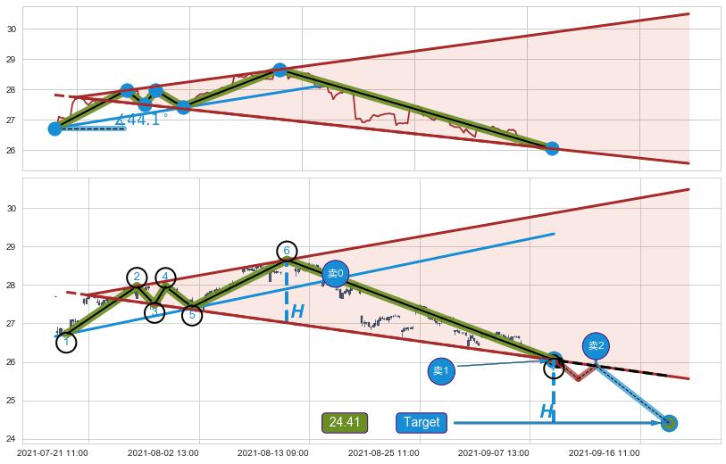 | 5 🅚:【战机起航】卖出点 ➕ 📐:扩散三角反转下行突破支撑位破位, 猜想持续下沉下跌,被突破的支撑位已变为阻力位 ☞ 看空信号 ⇥ 【均线】交织【图形】⇥ 综合量化分数: 36 | > |
