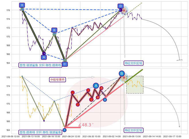➣ 已完成【鲨鱼】形态起点X: 08-09:15, 终点D: 09-02:14, 共123交易小时
