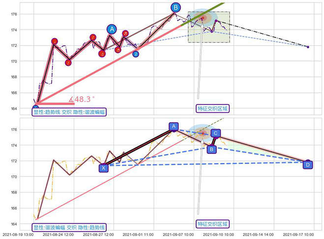 ➢ 趋势线与谐波蝙蝠信号事件周期长度级别相同,同周期信号事件