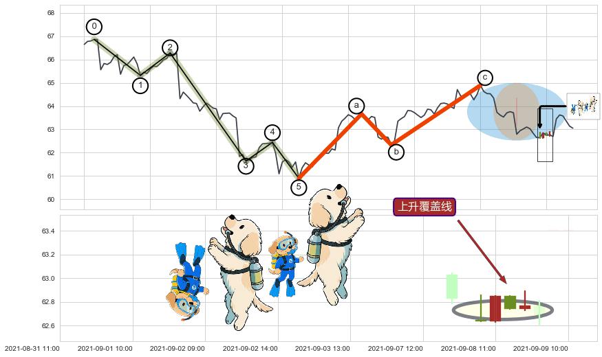 | 3 🅚:上涨两颗星 | 上涨三颗星 ➕ 🌊:波浪理论下跌5浪延续反弹:猜想回调C点击穿突破,猜想持续蓄力反弹abc上涨方向(大周期趋势均值回复后小周期持续趋势跟踪) ☞ 看多信号 ⇥ 【🅚线】交织【图形】⇥ 综合量化分数: 56 | > |