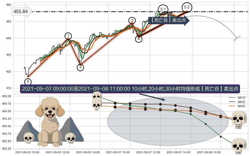 🍖 长线趋势跟踪组合短线均值回复[强支撑信号]2021-06-18 14:00-2021-09-09 13:00上升趋势依然成立(上涨趋势跟踪依然可行),短线价格略微下行回调(均值回复猜想),即将接近趋势提供的未破位的支撑价格:452.12。