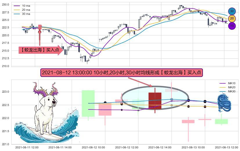 ⚀ 2021-08-12 13:00:00小时显现 10小时-20小时-30小时均线 【蛟龙出海】买入点 看多信号,后市看涨,买入