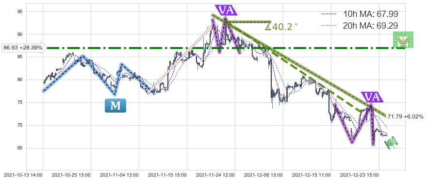♘ 阻力价格位86.93,可信任强度83.14%,距离最后交易2021-12-27 16:00形成的收盘价格67.71相差 +28.39%