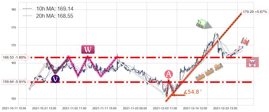 ➢ 【已达成】最小【整理】第一目标价格→(12-10:09: 166.36 ), 后续继续【整理】上涨动力微弱,上涨较小