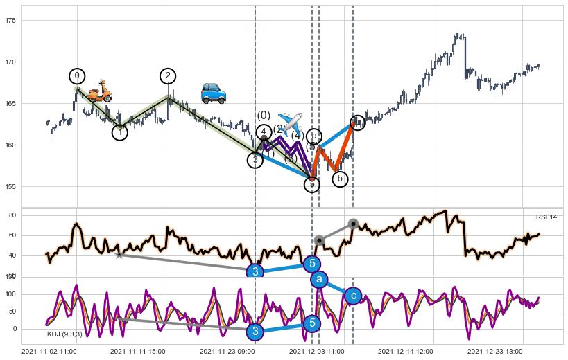 ➣ 第一, 三, 五浪下跌动能逐渐【增强变大】,趋势不断加固