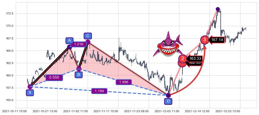 ➣ 已达成看涨【鲨鱼】形态全部的预期目标