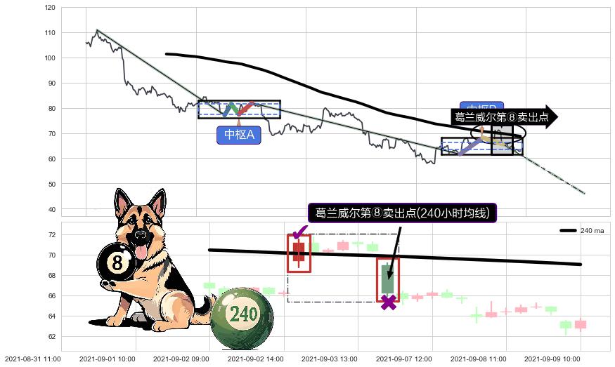 | 4 🅚:【绝命跳】卖出点 ➕ ☯️:缠论中枢点下降缠中枢B破位后距离1买距离较远,随后猜想后续持续下跌(趋势跟踪) ☞ 看空信号 ⇥ 【均线】交织【图形】⇥ 综合量化分数: 35 | > |