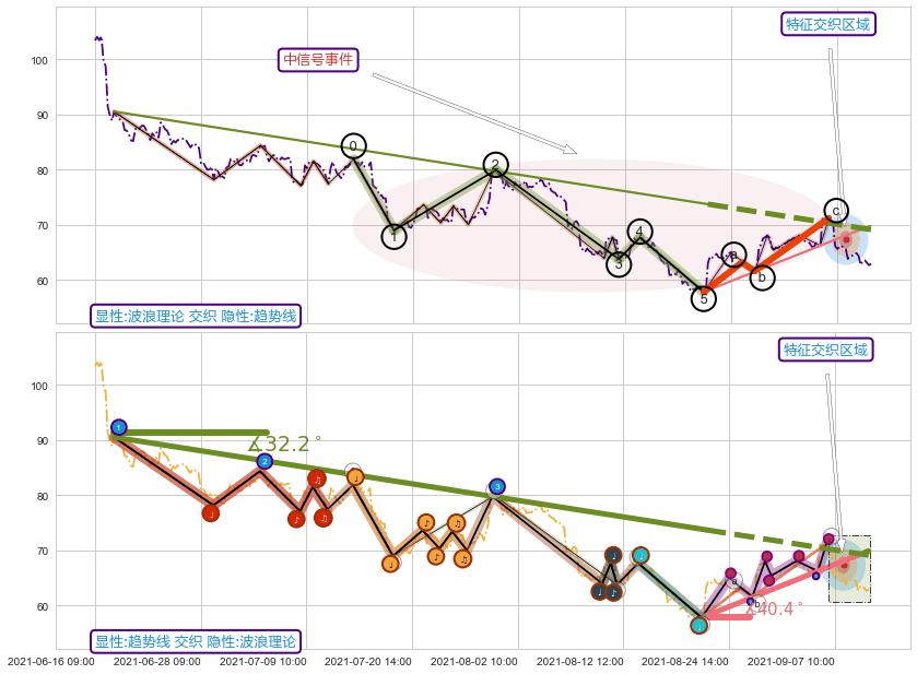 ➣ 2021-08-20 13:00-2021-09-09 12:00上升趋势存在反转[风险],其原上升趋势的支撑位(69.91)已破位[强阻力信号],原上升趋势角度: 40.4˚